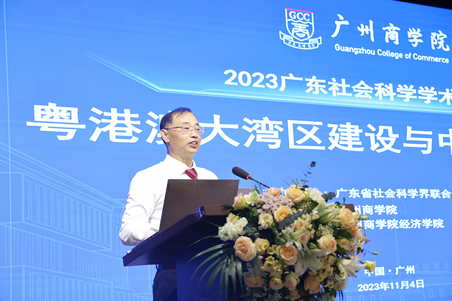 为深入学习贯彻党的二十大精神,把粤港澳大湾区建设成为世界级的湾区,推动中国式现代化的发展,11月4日,由广东省社会科学界联合会主办、我校承办的2023广东社会科学学术年会之“粤港澳大湾区建设与中国式现代化”学术研讨会成功举办。来自复旦大学、吉林大学、北京邮电大学、暨南大学、华南师范大学、广东财经大学、广东外语外贸大学、中共广东省委党校、广州市社会科学院、东莞市社会科学院、广东省徐闻县农业农村局等高等院校、科研机构、社会组织和企业的专家学者200余人共聚一堂,开展热烈的学术研讨。教育部“长江学者”特聘教授、副校长钟昌标(正校级)教授主持开幕式。