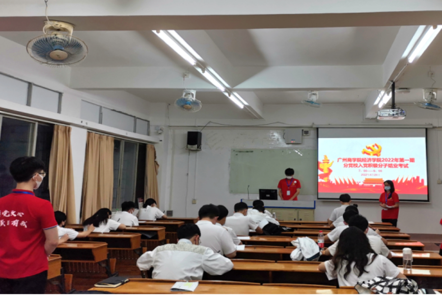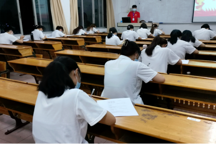 响应疫情防控常态化的要求,此次结业考试分别在三教104课室、105课室进行。考试前,考生手持身份证和学生证进入课室,有序落座;考生与工作人员全程佩戴口罩。考试过程中,每一位入党积极分子都严格遵守考场纪律,集中注意力认真答题。