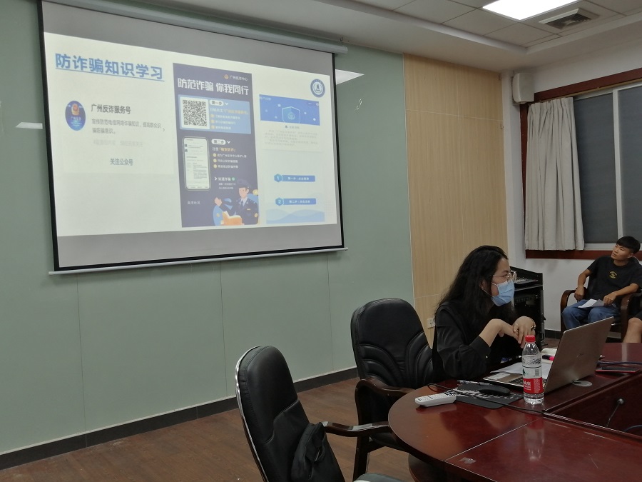 为着重提高新生的防诈骗意识,结合新媒体的优势,现场让同学们扫码关注“广州防诈服务号”,通过实时关注公众号的最新资讯,分析金融诈骗的新手段,通过学习不断提高防诈骗的辨别能力。