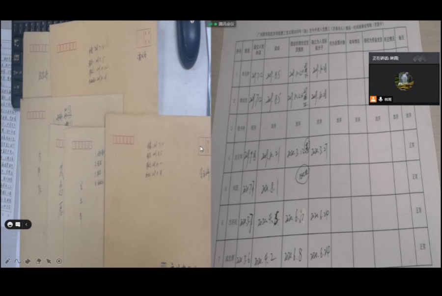 接下来,林雨书记表示,最近一年党员发展工作成效凸显,新入职教师加入党组织的积极性高涨,但教工党支部坚持党员发展工作的基本原则,进一步明确“控制总量、提高质量”的总要求,遵循从源头着手,做到“宁缺毋滥”的需要,要求此次党员大会各党员代表陈述己见,对新申请的教师同志们入校以来有无违反师德师风行为和违反教学规范的行为,并对其综合表现方面进行监督反馈,开诚布公,在公屏上表态。方式为如无存在的上述问题在公屏上面打“0”以示表态,反之如有违反师风师德问题在公屏上面打“1”,并向党组织反映反馈,全体党员进行线上监督反馈。