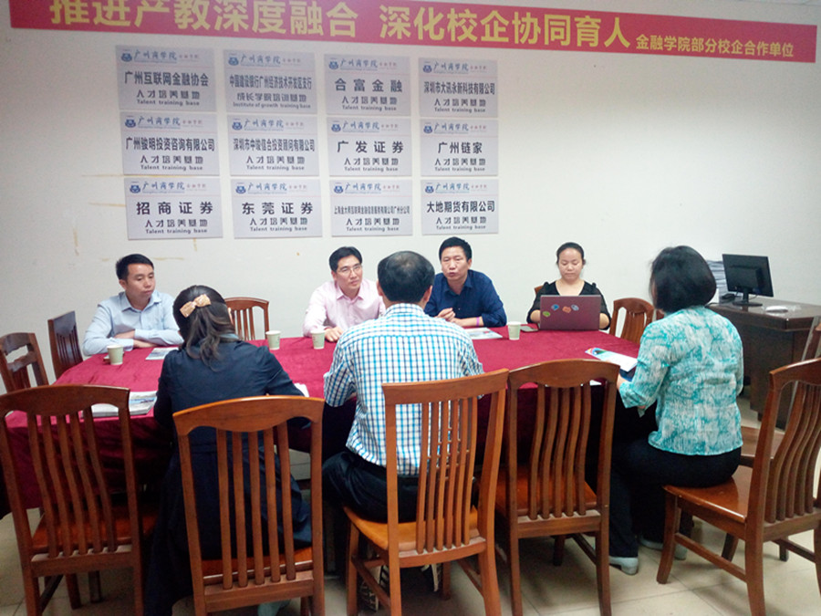 会上,校企双方对合作课程进行深入交流、磋商,并达成诸多共识。陈副院长向钟总等同行领导同事介绍本校各院系的具体情况,随后,钟总也介绍企业经营状况。钟总表示,有意分阶段进驻学校,植入课程、师资、业务,提供金融大教堂,一年级认知岗位,二年级短期实训(两三个月),三年级实习。同时,也会扶持创业明星。采用人才培训实训模式,通过依托学校推进方案,通过校企,校政,校校合作,实现教学,实训,就业,全方位从学生角度着想,按照人才培养方案,实现大学生输入和输出金融应用型人才,为大学生走向社会,融入社会,适应社会打下坚实的基础。