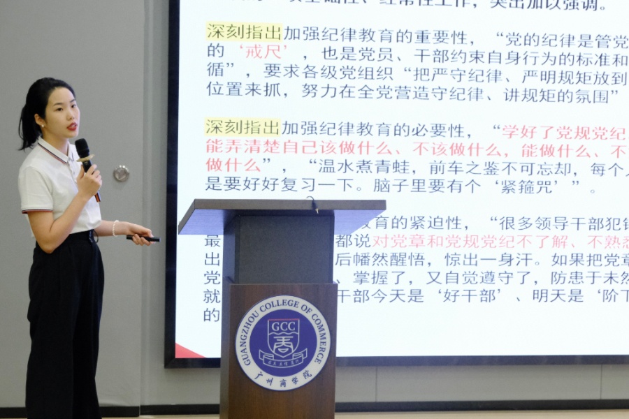杨芳淇就本次党日活动进行了总结发言,她表示党纪学习教育是加强党的纪律建设、推动全面从严治党向纵深发展的重要举措,希望支部同志们要坚持问题导向,时刻对标《中国共产党纪律处分条例》内容,深刻理解《条例》的实践要求和行为导向,把《条例》内容作为规范日常言行的衡量标尺和规范准则,筑牢纪律底线,增强纪律定力。
