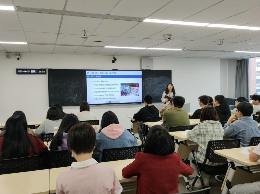 课后全体听课老师在二政108进行了此次公开课的教学研讨。老师们一致认为,杨老师授课过程中仪态教态得体、语调语速适中,表达清晰,逻辑性强,课堂时间把控能力强,整体表现非常不错。同时,建议在授课中可以结合中国的汇率制度和经济政策进行讨论分析,加强学生对知识点的理解和对中国国情的了解,增强制度自信。