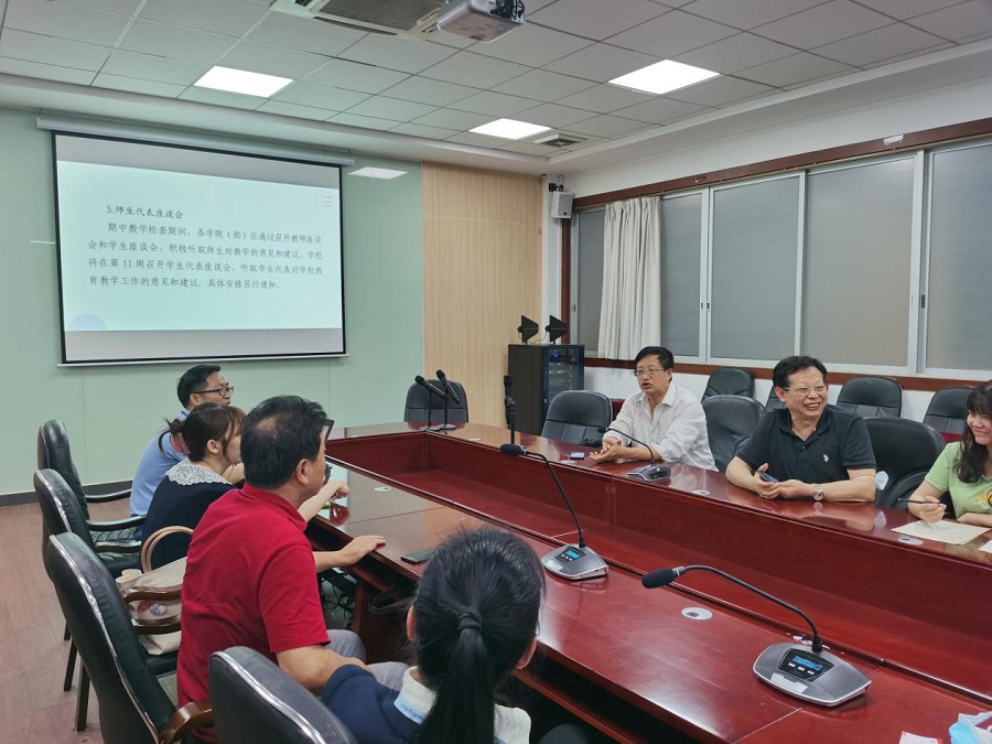 期中教师座谈会环节,教师们分别从教学准备、教学过程与教学总结三个阶段展开交流研讨,针对教学中遇到的难题及经验建议进行了充分的交流与分享。在教学准备阶段,课程分配安排方面应该充分考虑课任教师自身意见,尽早通知教师备课准备,教学教室的安排应该尽量合理,如需要大量板书的课程,应当安排大黑板教室。教学过程阶段,教学水平的高低主要看学生的学习效果,而不应该太注重于形式教学,教师们在教学过程中应该注重理论与实践的相互结合,突出应用型教学特色。教学总结阶段,教学总结的工作有利于教师教学水平的提高,帮助教师们解决教学过程中的问题,教师们一致认为教学总结工作是有益并且必要的。