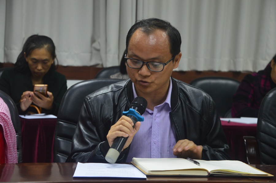 广州市福思特科技有限公司宣传部经理聂洁嫒介绍“云课堂”的产品概况、产品价值和产品特色做了介绍,并对“云课堂”的使用做了现场演示,他指出课程云平台实现功能会集教师集体备课、教学课件制作、学习考评、建立教学资源库、教研研讨、示范课观摩为一体,将有效推动信息化教学。培训过程中袁泽沛教授等教师作了现场交流。