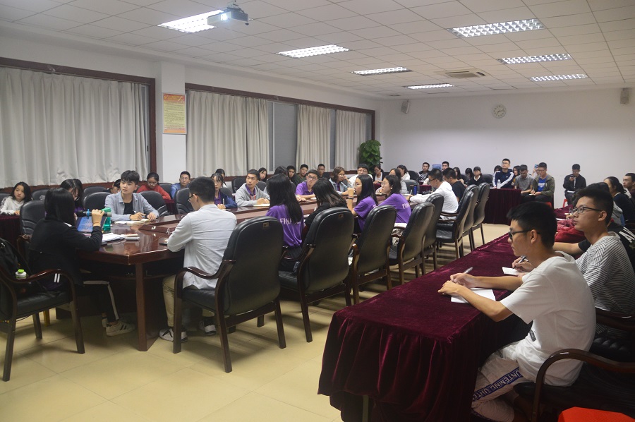 会议由轻松愉悦的自我介绍环节拉开序幕。接下来,秘书长郑少丹给新干事详细地介绍了团委的背景以及基本的文书要求,让在座的新干事们能够清晰地了解金融学院团委的组织架构;书记处黄寿明阐述了2018-2019第一学期工作计划以及最近的一次工作安排,让新干事对于团委的工作安排有一个基本的认识。随后,各部门部长分享招新感受以及自己的部门寄语,同时对新干事寄予厚望。紧接着,团委副书记何润惠对新干事们提出了第一学期工作寄语,同时强调礼貌问题,希望新干事们能够不忘所托,在日后的工作中贡献自己的一份力量。最后,由曾梓恒老师发言,老师给在座的每一位干部提出了五点要求:以礼待人;虚心学习;注意沟通技巧;树立好榜样作用,发挥好团委的带头作用;严格要求自己,同时希望同学们学有所成,有所收获。