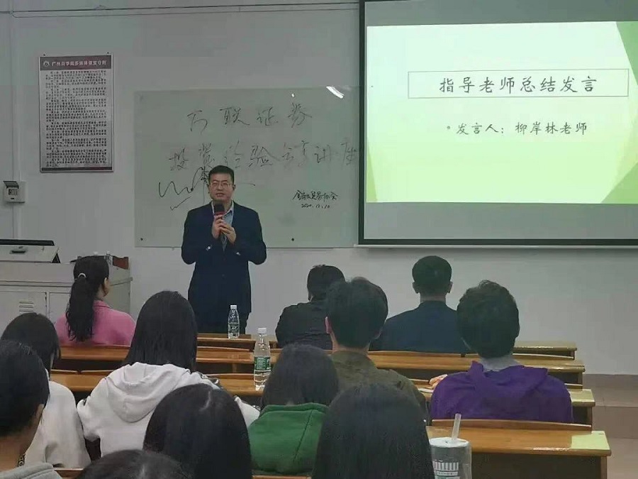 在讲座环节,万联证券珠江新城营业部机构专员、财富管理讲师古洋围绕如何树立正确的理财观这一中心,通过一首儿歌引出通货膨胀,并展示一份回忆录进行对比,向同学们讲述了通货膨胀的危害,借此告诉同学们为什么要理财;通过讲解理财的目的和引用巴菲特的例子向同学们讲述了如何树立正确的理财观念,通过讲解对理财的误区向同学们介绍了如何进行理财;通过对市场上存在的一系列的违法行为,让同学们明白投资者权益保护的措施与途径。在有奖问答环节,同学们踊跃提问,展现了对这次讲座的期待和热情。在有奖问答环节中,蔡明海总经理也分享了他自己的投资经验,随后由古洋讲师提出一个理财规划比赛案例,引发同学们对如何理财的思考。在总结环节,指导老师柳岸林老师对同学们的参加表示感谢和欢迎,并通过介绍本次讲座的相关内容希望同学们将所学到的理财知识和理财理念运用到今后的学习生活中,为今后的人生打下良好基础。