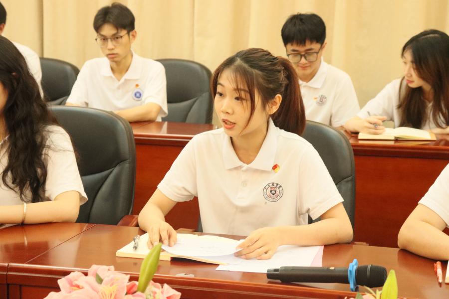 其中19级学生代表吴嘉豪分享了军旅生涯的经历以及习近平总书记在广东视察时的重要讲话精神的心得感悟,表示他作为一名退伍军人,“报名参军,是我做过的最正确的决定。” 他牢记奋斗是青春最亮丽的底色,也秉承如此信念度过大学生活。退伍不褪色,青春正当时,在未来的日子里,他将继续提升自我,践行全心全意为人民服务的宗旨,肩负时代使命,继续开拓奋进、扎实工作。