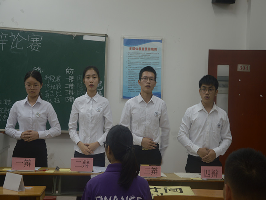 由校学生会、校团委主办,金融学院学生会与辩论协会共同承办的“明辨杯”辩论赛四强赛第二场于2017年5月9日晚在四教304教室顺利举行。辩论协会的黄沁、崔琪、刘荆鸿担任此次比赛的评委。