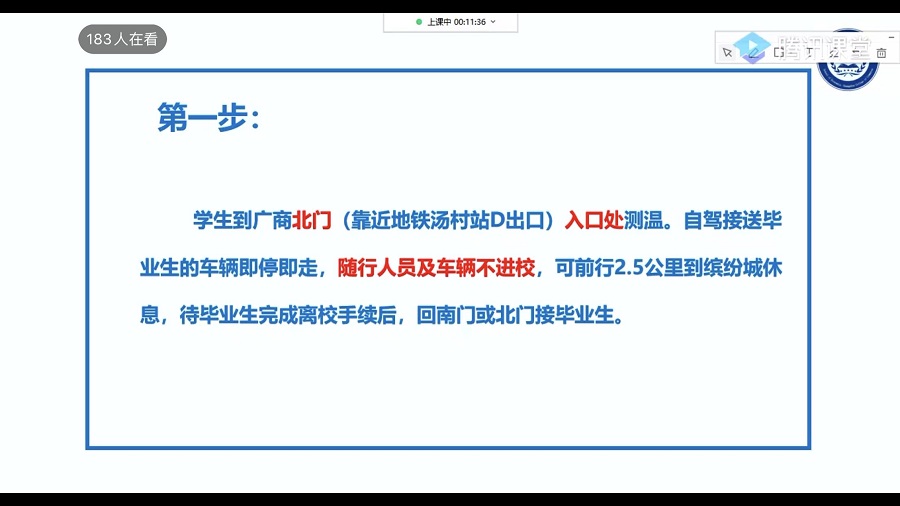 此次会议主要分为两部分,第一部分为老师对毕业生的寄语。张雪梅书记首先发表对毕业生的祝福,祝福所有毕业生前程似锦,并欢迎同学常回母校看看;接着张素平老师总结了作为17级辅导员的三年时光,见证了17级毕业生的大学成长,表达了对毕业生的不舍并祝愿每位同学归来仍是少年;第二部分是老师对毕业生离校流程的详细讲解。徐芷君老师分别从入校阶段、在校内阶段、离校阶段三个方面,对毕业生的离校步骤进行了详细的解讲,合理安排了毕业生领取证流程。最后黄泽妙老师对毕业生离校的相关细节做出补充,并对毕业生送出最诚挚的祝福。