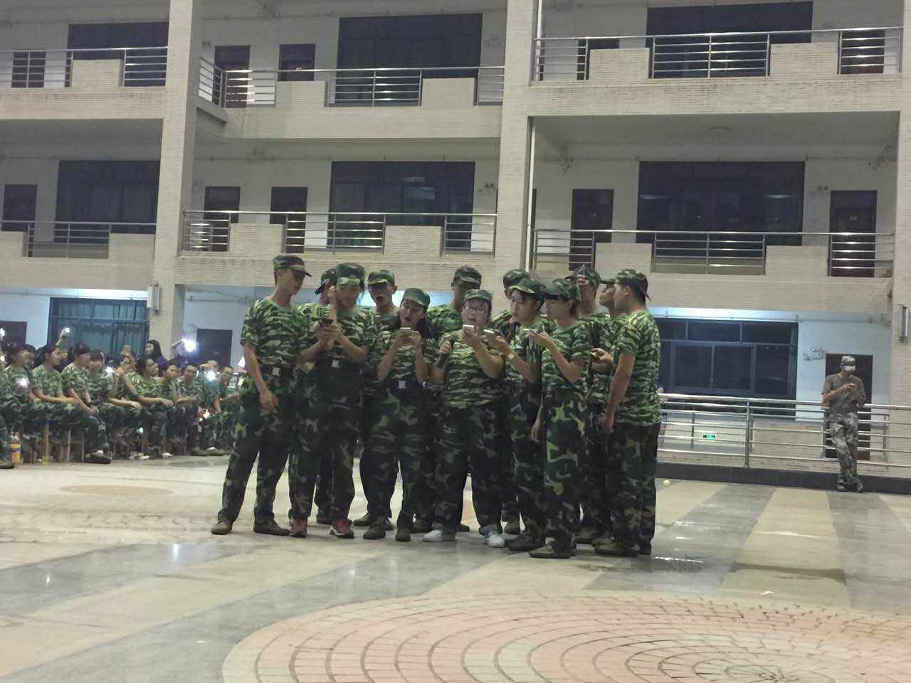 广州商学院副校长吕泉荣、学生处处长何柏略、学生处副处长钟远辉也来到我院中秋晚会现场,他们走到同学们中间,和大家一同观看同学们的才艺表演。在拉歌环节结束后,来自各个连排的同学们施展十八般武艺,吹拉弹唱,歌舞青春,使新生的多才多艺初露头角。同学们表演结束后,团学干部和带班学长也各自表演了集体节目,激起了全场的声浪,喝彩不断。最后在一营营长的指挥下,全体教官进行了整齐划一的队列表演,向领导、老师和同学们敬礼,博得在场所有人的热烈掌声,为中秋晚会的演出画上了圆满的句号。