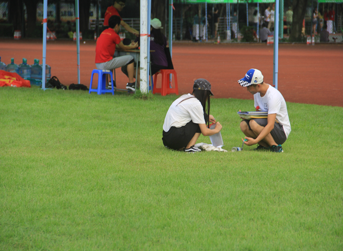 学长在操场整理文件
