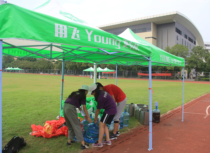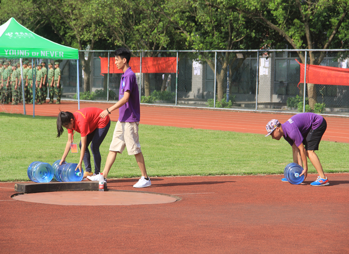 天气很炎热,时间仿佛一日如十日,军训的新生的身体经受着“钢铁是怎么练成的”折磨,当然绝对不能忽略他们绿色军装背后的紫衣人和红衣人这道靓丽的风景,在背后默默付出,默默奉献。