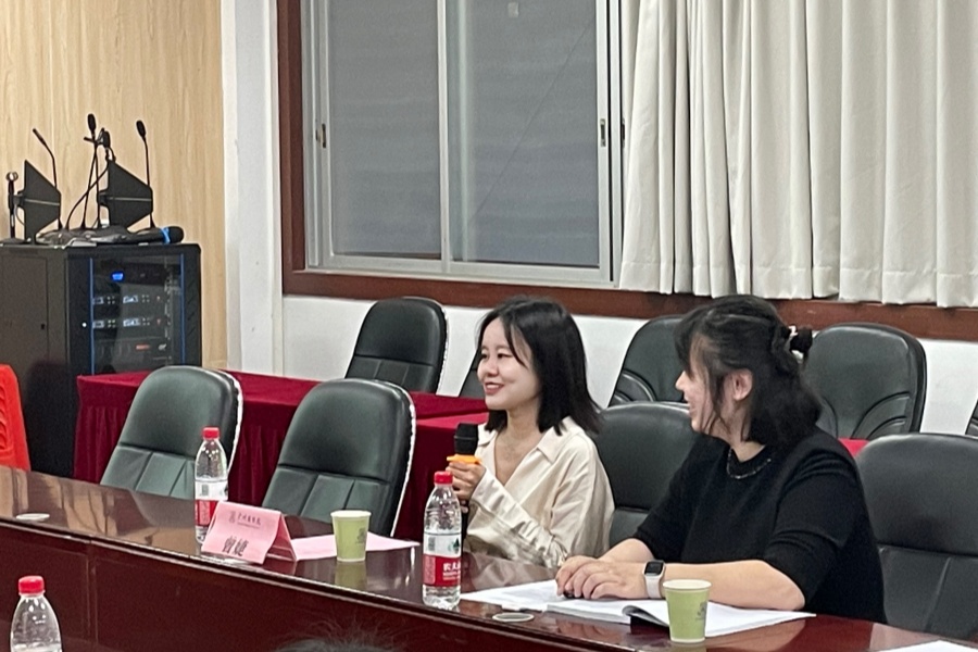 张雪梅对学院心理工作进行了概述,分析了学院心理工作具体情况。刘晶老师以“以⼼养⼼,⽤⼼育⼈”为心理主题展开经验分享。分享后杨芳淇、黄勃、程仕芬对心理工作难点和惯用工作方法与曾婕展开讨论交流,在曾婕引导下开展经验总结和反思。