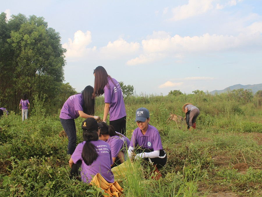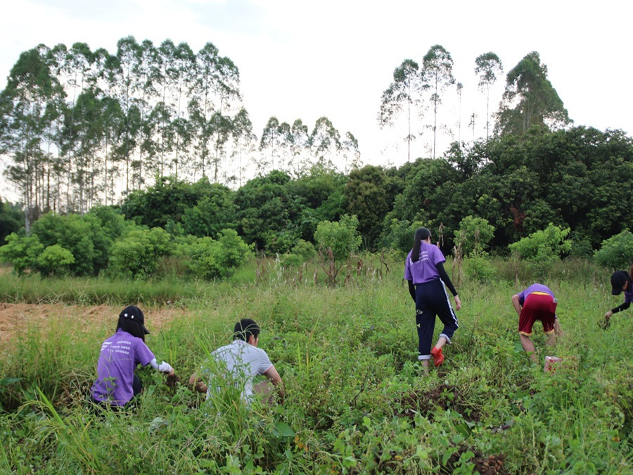 青春逐梦志愿服务队全员随着下课铃响在杨子坑小学教室前集好队准备务农。每天出发前陈敬宗老师提醒志愿者们注意安全,小心蚂蚁蜜蜂等昆虫,提醒志愿者们带上水和止痒消毒的药膏药品。到达现场,志愿者们纷纷撸起裤腿下田干。起初志愿者们拔花生的动作较为生疏,在老师和农户阿姨的帮助下动作渐渐娴熟起来,热情的农户阿姨还给志愿者们送水。天色渐黑,志愿者们汗如雨下,在美丽的晚霞下坚持完成了拔花生和摘花生的农活。最后跟着老师踏着乡间小路疲惫并快乐地走回杨子坑小学。