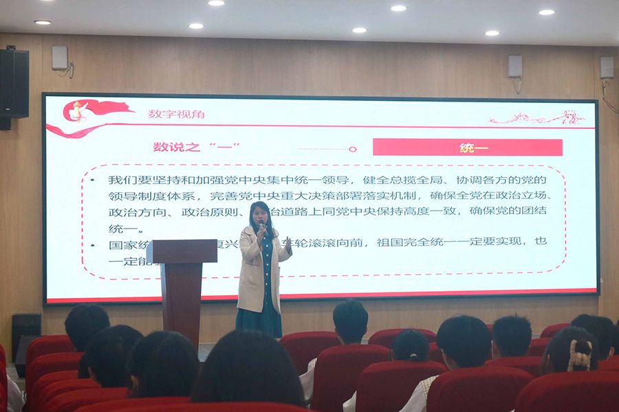 随后,陈丽红老师为青马班学员们进行了主题为“数字视角学习党的二十大精神”的授课并作出总结,她强调,我们正处于百年未有之大变局,这既给我们带来了新的机遇,同样也带来了新的挑战。作为新时代青年,青马班学员们必需“以志为先,以新为径,以苦为食”,以青春之名,努力在新时代不懈奋斗,建功立业。