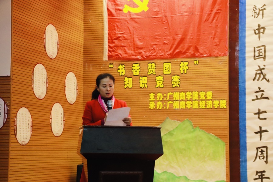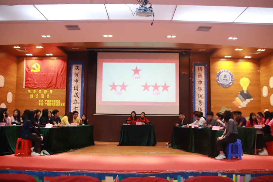 为培养学生的阅读习惯,营造浓厚的读书氛围,提高同学们的精神境界和文化修养,推进书香广商品牌建设,由广州商学院党群工作部主办,suncitygroup太阳集团团委承办的广州商学院书香广商之“书香赞国杯”——庆祝新中国成立七十周年·弘扬传统文化知识竞赛决赛于四教学术第一报告厅成功举办。