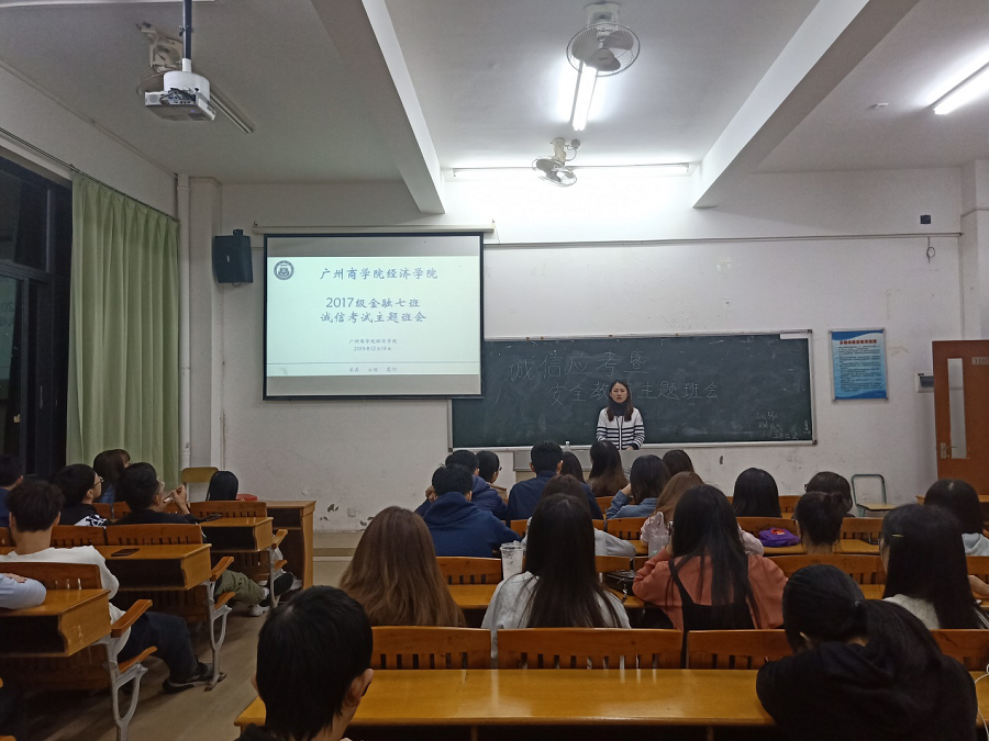 为提高学生的思想认识,树立诚信意识,促使学生端正学习态度,以良好的心态迎接即将到来的期末考试,同时加强学生的安全防范意识、自我保护意识,减少不必要的安全事故发生。suncitygroup太阳集团17级金融学7班于2019年12月23日,在第四教学楼110教室召开了诚信应考暨安全教育主题班会。参加班会的有辅导员张素平和17级金融学7班全体学生。