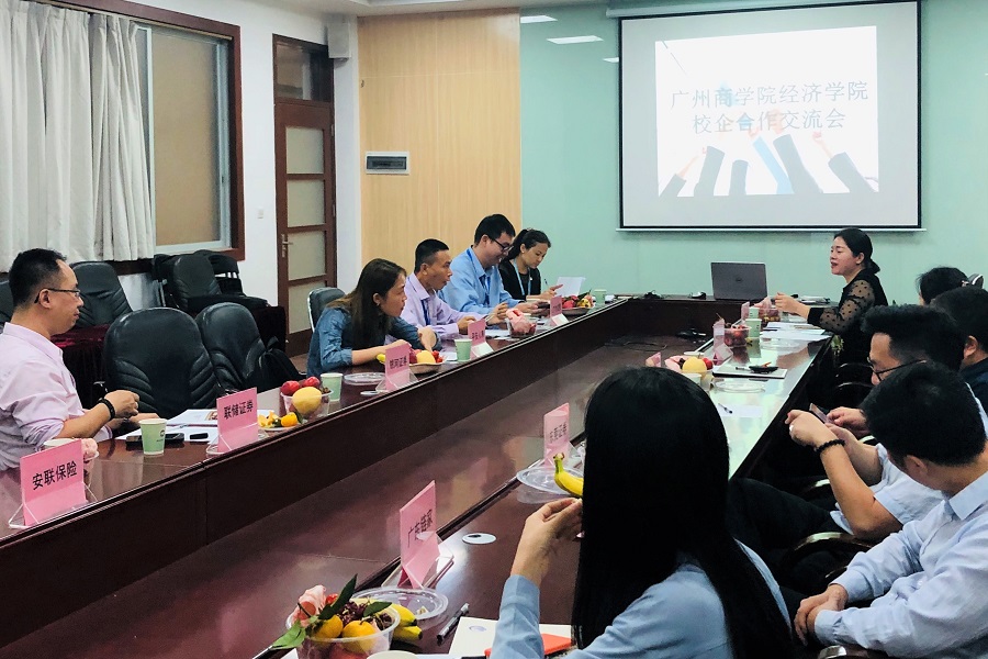 为了贯彻学习十九届四中全会精神,继续推进“不忘初心、牢记使命”主题教育,将十九届四中全会精神贯彻于我校建设应用型人才高校的宗旨和我院专业建设的实际工作中,深化校企合作,促进产教融合,拓宽学生就业渠道,提高学生就业竞争力。suncitygroup太阳集团于2019年11月15日下午在第二行政楼108会议室召开了suncitygroup太阳集团校企合作交流会。本次会议由张雪梅书记主持,广发证券广州花城大道营业部、中国平安人寿保险股份有限公司等十几家企业的代表人参加了座谈交流会。