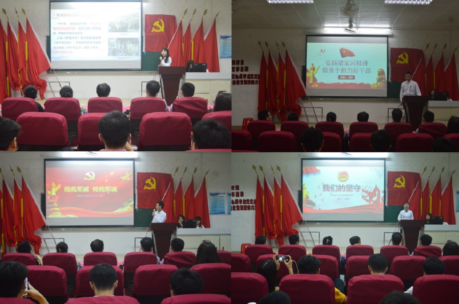 为学习贯彻落实习近平新时代中国特色社会主义思想,增强大学生党员党性修养,充分发挥学生党员的先锋模范作用,金融学院16级学生党支部于3月12日至4月4日开展了为期四周的初赛评比,经过激烈的角逐以及支部书记的亲自指导,最终有8位党员同志脱颖而出晋级决赛,决赛于2019年4月9日在第四教学楼第二学术报告厅举行。出席本次竞赛活动的有金融学院党总支张雪梅书记、金融学院陈德余副院长以及各年级辅导员。活动由林宇思、向磊主持。