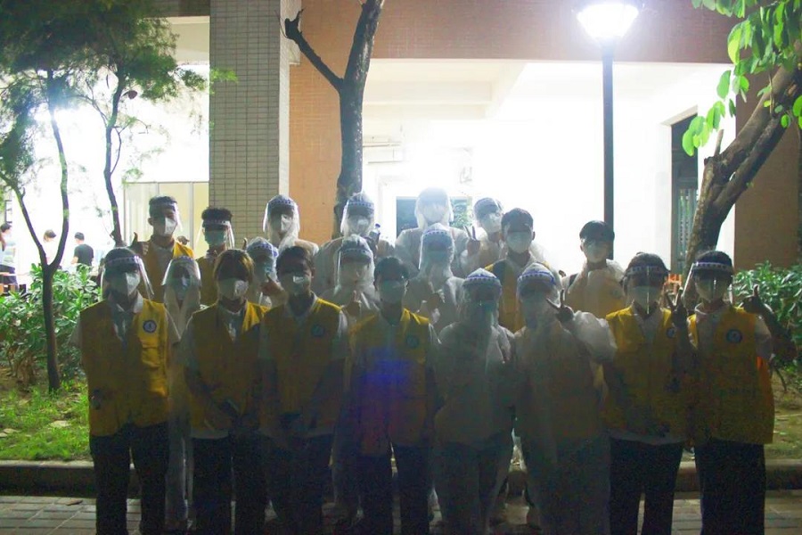 全员核酸检测工作琐碎而复杂,信息数量大、工作任务急,但是,全体志愿者始终以高标准、严要求、严谨对待每一个岗位的工作,次日凌晨1:43志愿者们安全抵达学校,长达6个多小时的奋斗,共计完成1万+人次的核酸检测。黑夜中,他们争分夺秒为黄埔人民群众健康保驾护航,保证了富春和华沙社区核酸检测工作顺利完成。在这个夜里,他们明黄的小马甲显得分外耀眼,他们全力投入到这场保卫黄埔,保护人民的"抗疫战",在这个夜里,他们让群众们真真切切的感受到了端午“安康”这个词的意义所在,用青春色彩点亮了这黑夜里的灯。