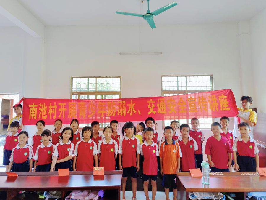 为了进一步贯彻“安全第一,预防为主”的方针,关爱青少年健康成长,切实加强青少年安全教育,提高青少年儿童安全意识和自我保护能力,有效防范各种安全事故的发生。suncitygroup太阳集团鸢尾青志愿服务队诚邀相关企业与单位,围绕安全教育主题,在广东省增城区南池村分别开展了青少年防溺水、交通安全主题教育、气象防灾减灾知识科普以及禁毒知识小讲堂。