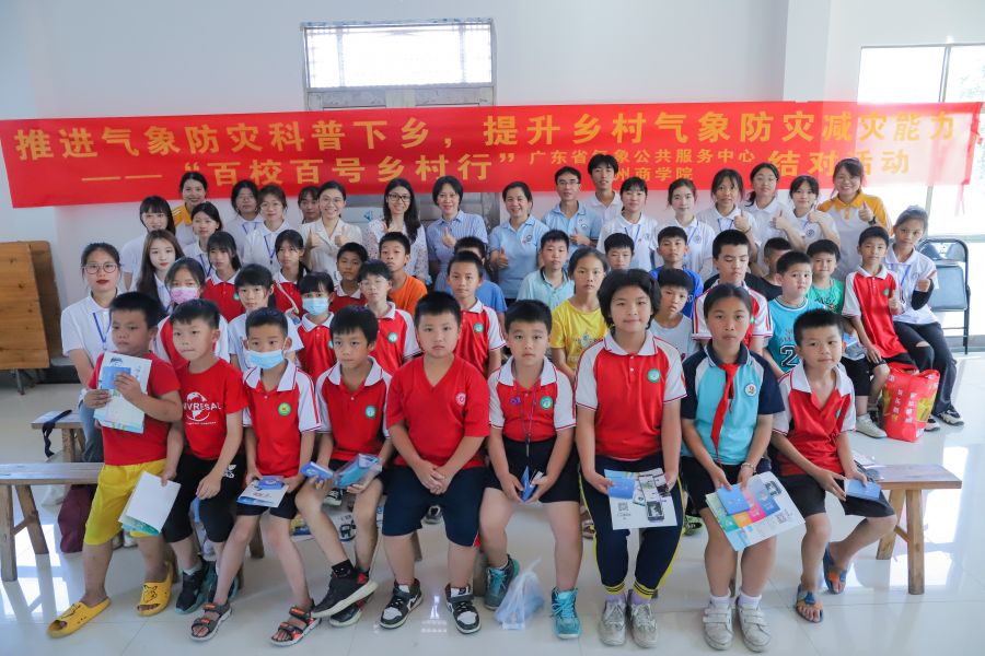 气象防灾减灾知识科普课堂上,青年导师贾子冰利用气象灾害和校园安全问题具体举例讲解,紧扣“认知灾害,主动防御”主题,结合气象特点揭露潜在危险,强调了极端天气提前防范和自救的重要性,并就应对措施及预警标识进行了着重讲解。授课结束后,青年导师黄玉明利用知识竞答及自由绘画的方式,引导青少年树立关注气候变化、保护环境、爱护地球的意识。通过寓教于乐的教学方式,在知识传授中培育下一代希望!广州商学院与广东省气象公共服务中心同时深入贯彻落实“我为群众办实事”的工作要求,课后向南池村民们派发防灾减灾宣传手册,深入乡村普及科学理论、以切实行动下乡兴乡,助力全面推进乡村振兴!