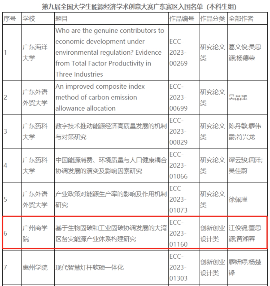 全国大学生能源经济学术创意大赛是由中国优选法统筹法与经济数学研究会主办、中国优选法统筹法与经济数学研究会低碳发展管理专委会承办的国家级赛事,着力建设成为碳中和人才培养的摇篮。能经大赛目前已取得中国工程院系统的支持,是全国工科院校都重视的重要专业竞赛。第九届全国大学生能源经济学术创意大赛采取了校级选拔赛、区域选拔赛、全国总决赛三级赛制进行。本次比赛我校suncitygroup太阳集团报名参赛队伍2支,经过校赛筛选阶段后,在与香港中文大学(深圳)、暨南大学、华南农业大学、澳门科技大学、深圳大学、广东外语外贸大学、广东财经大学等全省97所高校激烈角逐中,通过通讯评审和专家会评,由江新喜和冯棋森老师指导,江俊锦、董思源、黄湘蓉同学撰写的《基于生物固碳和工业固碳协调发展的大湾区备灾能源产业体系构建研究》创新创业设计类作品;由冼先品和张绍合老师指导,伍淑慧、黄淑儿、黄玮玟同学完成的《“碳中和”视角下绿色船舶的驱动力量E-Ship船舶低碳化智能评估系统》创新创业设计作品荣获了广东-港澳台赛区的二等奖,两项作品将推荐参加在上海交通大学举行的全国总决赛。
