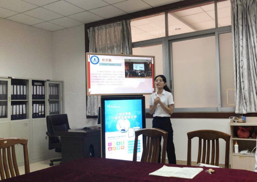 按要求,候选人要现场做一分钟的自我介绍和5分钟的ppt个人演讲。会议开始,四位候选人分别从思想、学习、干部经历、实践经历等各方面向评委展示自己,四位候选人都有自己的特色。演讲结束后张雪梅书记对四位候选人进行了精彩的点评,表扬了其特色亮点,也对其存在的不足进行了指出和建议。并教育同学们,不要过度有负担,要以一颗平常心对待,抱着学习的态度。四位同学都受益匪浅。