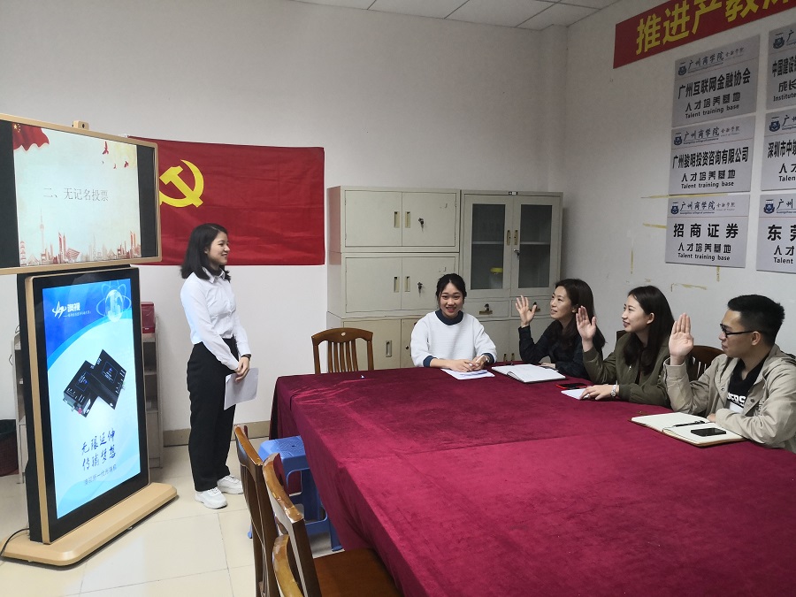 2019年3月26日中午,2018级学生党支部于第二行政楼117会议室召开了预备党员转正大会。会议由预备党员李芷珊主持,支部书记范英琦,支部委员曾梓恒和张素平出席了本次会议。