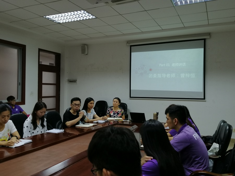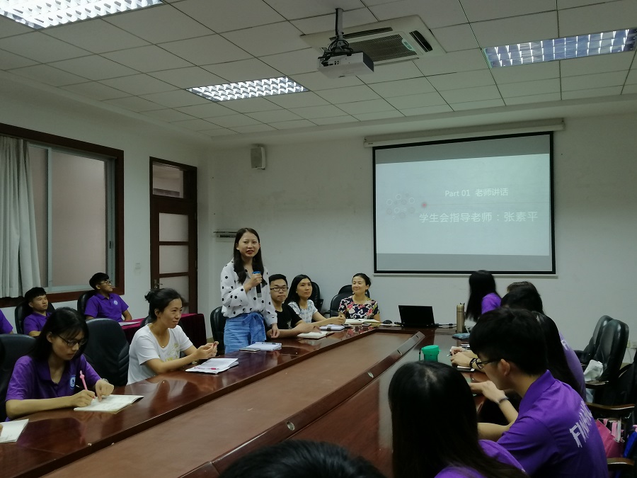 大会开始之际,张雪梅书记用生动俏皮的语言为大家介绍了金融学院的几位指导老师以及新加入这个大家庭的曾梓恒老师,在一片欢声笑语中迅速暖起了会议的气氛,为大会的进展打开了局面。随后,曾梓恒和张素平老师用简洁有力的语言为大家介绍了自己,表达了他们对接下来的新生接待工作的顺利开展的美好祝愿。
