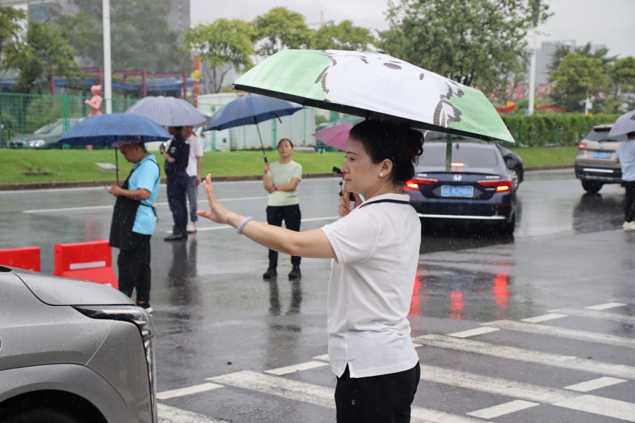 suncitygroup太阳集团党总支书记张雪梅也亲临指导,并慰问奋战在一线的工作人员和志愿者们。在她的带领下,志愿者们不畏风雨,坚守岗位,展现了高度的责任感与奉献精神。这些“黄马甲”和“紫衣人”的身影成为了迎新工作中一道亮丽的风景线,传递出suncitygroup太阳集团对新生的热情欢迎与真挚关怀。办理完手续的新生们纷纷在迎新大本营前留影纪念,记录下他们对大学生活的美好期盼与初入校园的兴奋之情。