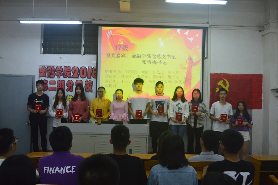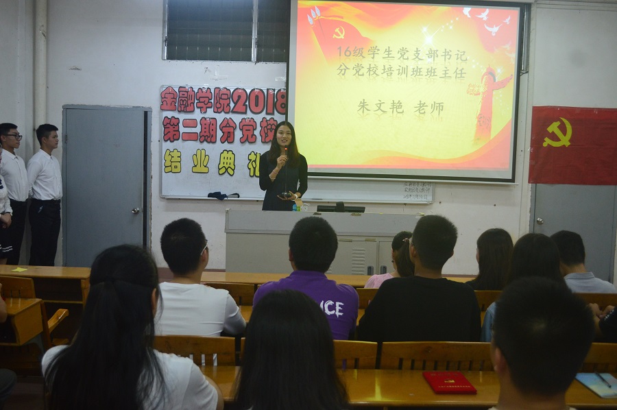 为了让入党积极分子不忘初心,牢记使命,同时进一步增强党组织凝聚力,完善金融学院党支部的组织架构,2018年11月14日,金融学院学生党支部于广州商学院一教115举行入党积极分子结业典礼暨学生党支部小组扩选会。出席会议的有金融学院党总支书记张雪梅书记、16级学生党支部书记朱文艳老师、金融学院辅导员冯羽老师、曾梓恒老师和张素平老师。