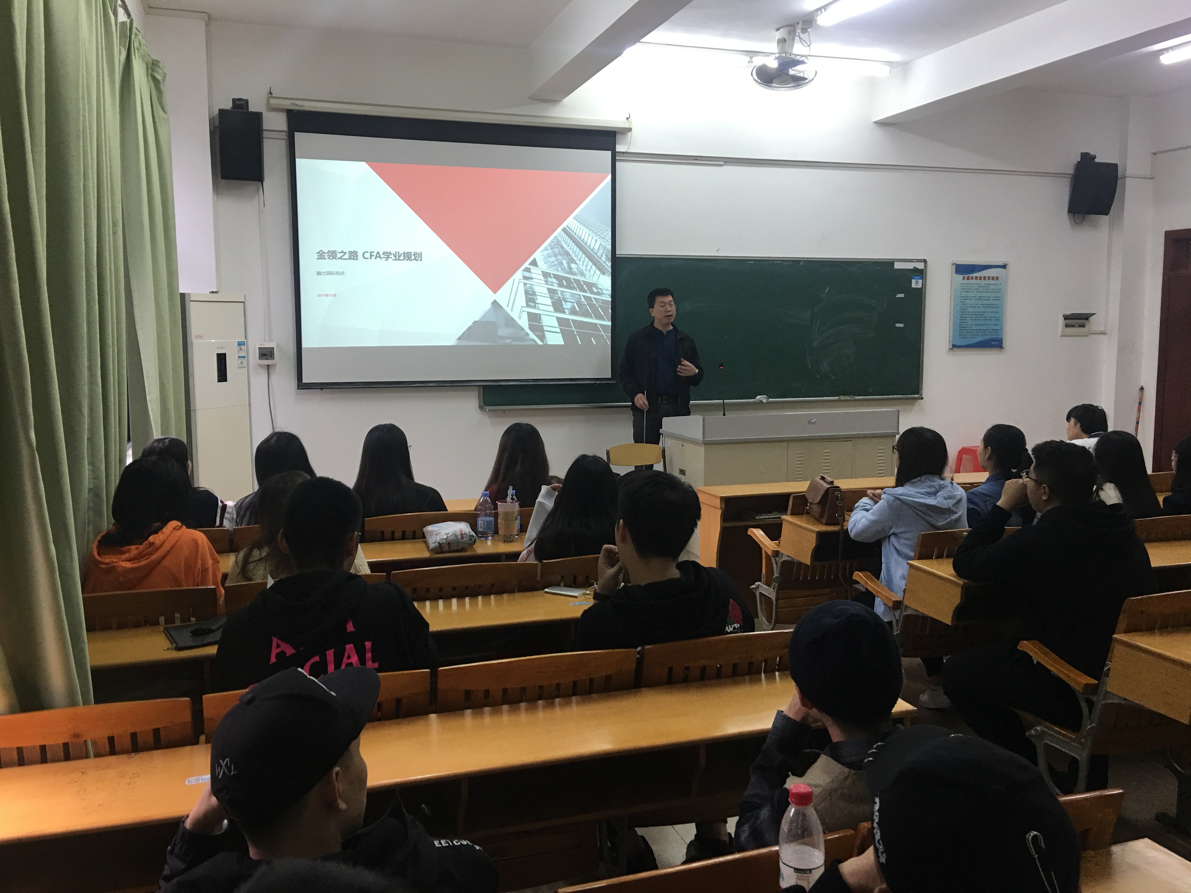 11月19日下午,南开大学数量经济学李罗宾博士于四教204专门为2017级CFA精英班的同学们做了一场学业规划方面的指导讲座。