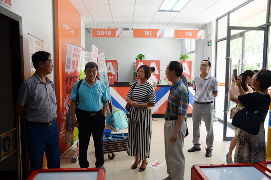 座谈会后,梁华南一行参观了创客空间、菜鸟驿站、校园E银行和京东实训中心。电子商务管理学院副院长白丽详细介绍了这些实训基地的基本情况,并指出这两个 与外对接的实践平台能更好地让学生融入社会实践中去,同时让学生的实践能力都能得到大大的提升。梁华南一行对这些实训基地给予了高度肯定,对学院太阳集团的迅速发展表示惊叹和赞赏,并期望两院在深化创新创业教育改革,提高人才培养质量,促进学生全面发展,以实践促成就业、以创业带动就业的道路上越走越宽 敞、越来越顺畅。