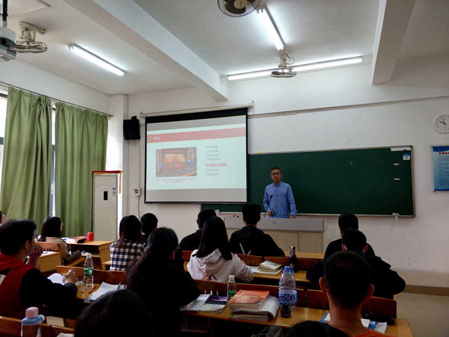 为了深入贯彻落实习近平主席提出的实施军民融合发展战略要求、让两会精神走入校园,我院于2018年3月28日在四教204开展了第一堂思想政治理论课系列之“认真学习贯彻党中央习近平主席战略部署,聚力同心推动高校军民深度融合的发展”课堂,主讲人为金融学院院长陈石清教授,授课对象为金融学院17级学生。