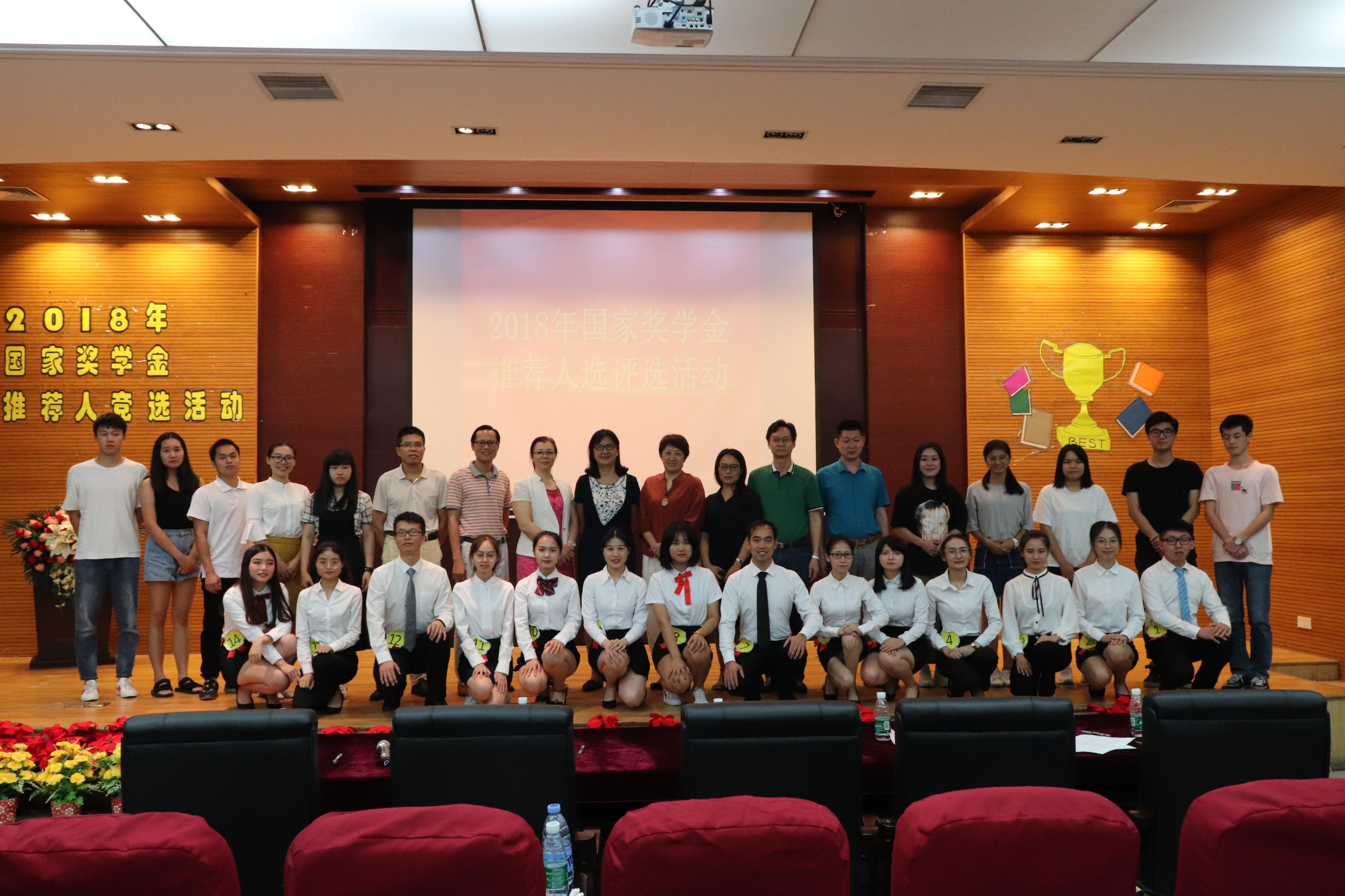 为充分发挥优秀学生榜样示范作用,9月28日下午,广州商学院在第四教学楼第一报告厅举行2017-2018学年国家奖学金推荐人选评选活动。经过评审团逐项评分后,评选出12名同学作为我校代表到广东省教育厅和国家教育部参评。金融学院何锡智同学凭其优异表现获得了国家奖学金的荣誉奖项。