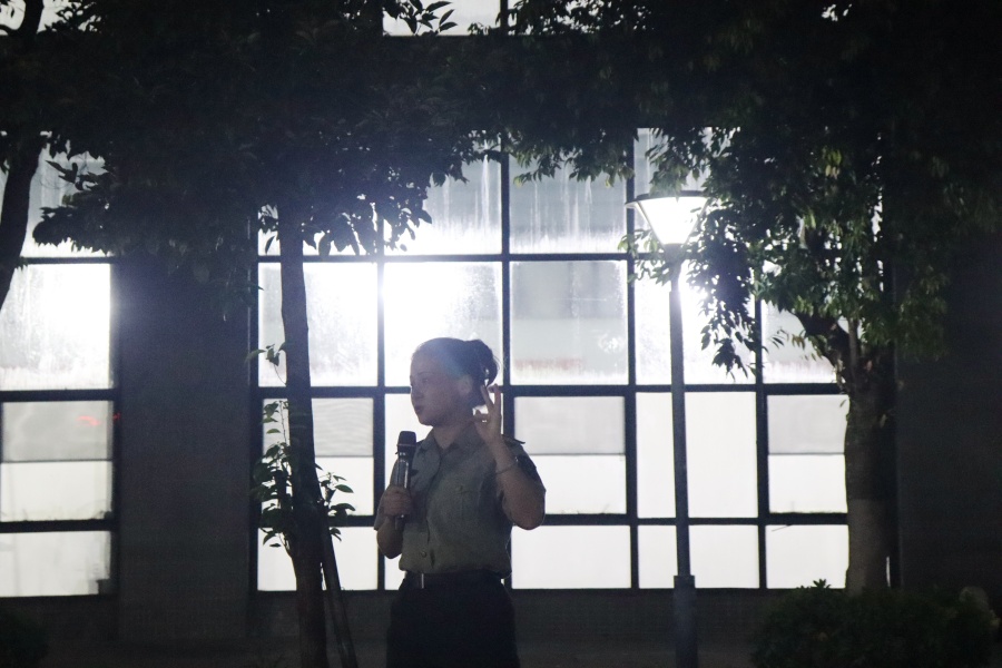 9月24日晚,suncitygroup太阳集团党总支书记张雪梅来到军训场地,看望并激励正在军训的2024级新生。张雪梅书记对新生的精神风貌表示高度肯定,她说道:“看到大家坚定的目光、笔直的军姿、整齐划一的动作和响亮的口号,我深感军训的目的已经达成。”