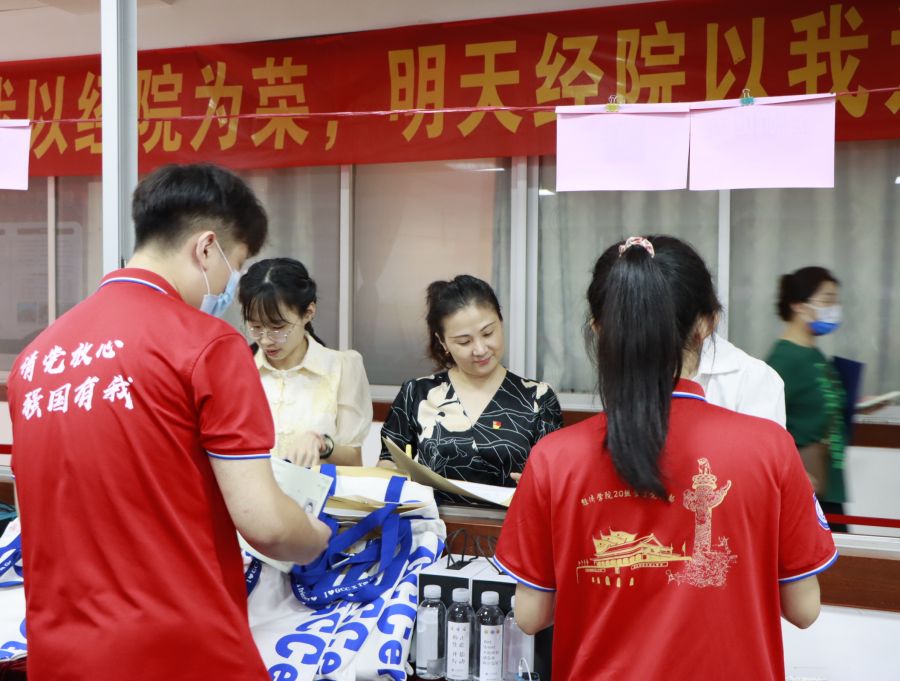 为助力suncitygroup太阳集团2022届毕业生文明离校的各项工作,发挥党员的先锋模范作用,扎实推进“我为群众办实事”实践活动,展现青年志愿者昂扬的精神风貌,营造文明离校、感恩母校的暖心氛围,suncitygroup太阳集团于6月26日在第二行政楼108、103组织开展毕业生暖心志愿服务活动,为毕业生整理发放毕业材料并送上专属纪念品。suncitygroup太阳集团党总支书记张雪梅、毕业班辅导员魏楚玲、巫进娣、姚凡及30名志愿者参与此次活动。