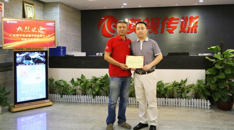 4月19日,金融学院院长陈石清教授,副院长张燕、陈德余等一行4人到广州澳视互动传媒有限公司洽谈校企合作事宜,并受到副总经理贺新兴、贾东良、王大勇等热烈欢迎和热情接待,双方就校企合作展开了友好地交流。