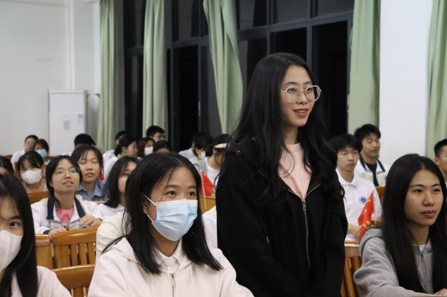 张雪梅向同学们阐述国家发展的重要时间节点,以一条时间线向大家描述国家从站起来到富起来再到强起来的伟大历程。她着重介绍了三个历史决议和三次重要大会,以“走好新时代长征路”和坚持“三个务必”为基准,引导同学们从党的百年奋斗历程中汲取继续前进的智慧与力量,激励学生们响应时代号召,勇担时代使命,珍惜大学生活,把握大学时光,脚踏实地、行稳致远,努力奋斗、成就理想。