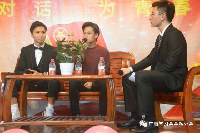 2016年12月12日19点30分,学习会金融学院分会在歌舞厅举办了以“梦在心中,路在脚下”为主题的精神访谈活动。这次活动诚邀了我校金融学院经济学讲师吴强老师,学生党员代表李华学同学,学生榜样代表刘朝彭同学作为本次活动的访谈嘉宾。出席本次活动的嘉宾还有学校团委书记李锦堂,金融学院党总支书记张雪梅,学习会金融学院分会指导老师陈敬宗,16级辅导员谢洁老师及校院两级分会理事长。此外,还有学习会金融学院分会的全体干部及部分学员参加了此次访谈活动。