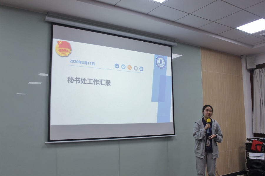 随后,书记处点评。首先院团委书记巫进娣老师对疫情防控阶段各部门的工作表示肯定和感谢,并对新学期工作提出要求。一是要提高工作效率,做到常做常新,工作要积极谋划,主动作为,勇于担当,不断适应新时代的新形式,找准新学习的新任务,展示共青团员全新作为;二是发挥优秀共青团员的先锋模范作用,关键时刻要攻坚克难,加强交流协作,以更高的站位、更广的视野对待工作,转变传统思想,以“学、思、践、悟”的四维为着力点,立足于整体解决问题。