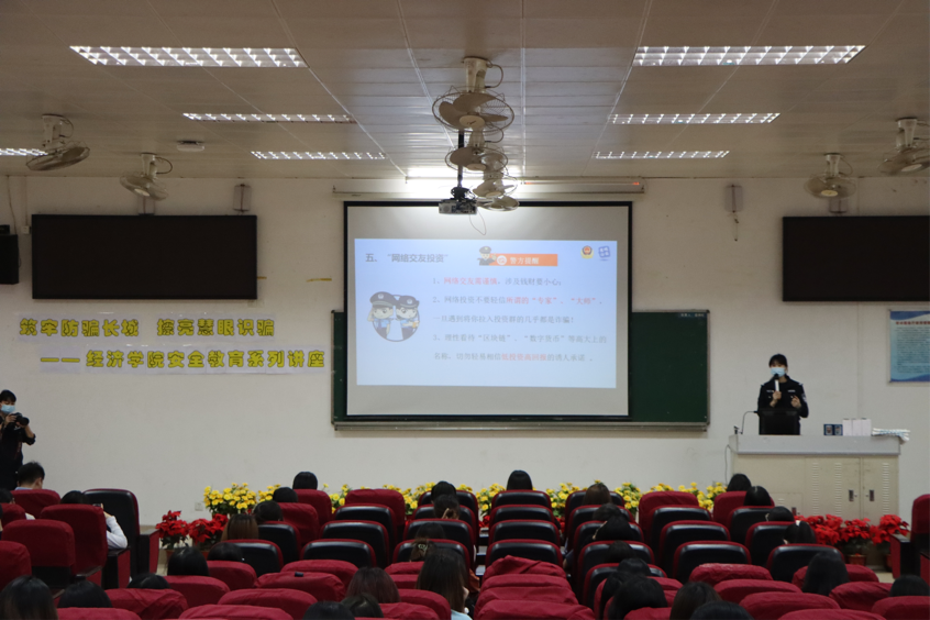 本次讲座重点针对当前大学生群体面对各类诈骗时普遍存在的防范意识差、辨别能力弱等现象,讲座以“防范电信网络诈骗”为主题,宣讲员通过受骗案例分享,向同学们普及了一系列防诈骗知识,并给大学生提出了忠告:诈骗翻新花样多,细辨陷阱须提防。