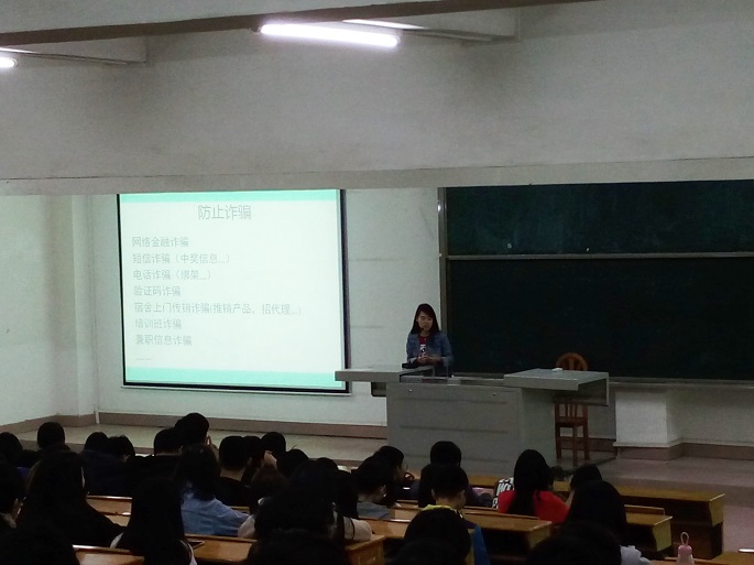 为了提高我院学生的安全防范意识,将校园安全常识传达到每一位同学,进一步落实安全文明教育工作,金融学院于2016年12月15日在教学楼A107举办2015级年级大会,辅导员吴茜茜及15级全体学生出席此次会议。