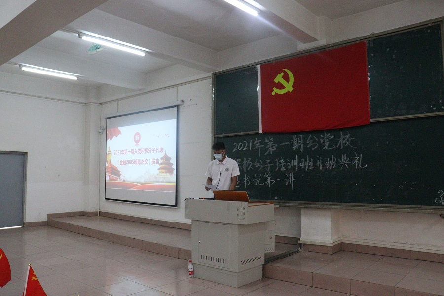会议第三项议程是由上期优秀学员代表黄金龙和本期入党积极分子代表陈杰文发言,两位同学的发言都表达了自己对党的忠诚,不忘初心,牢记使命,并且希望本期的学员们在以后的学习、工作中严以律己,刻苦学习,带着这份热情,认真学习党史,积极向党组织靠拢,时刻以党员的身份要求自己,以身作则,发挥先锋模范作用。