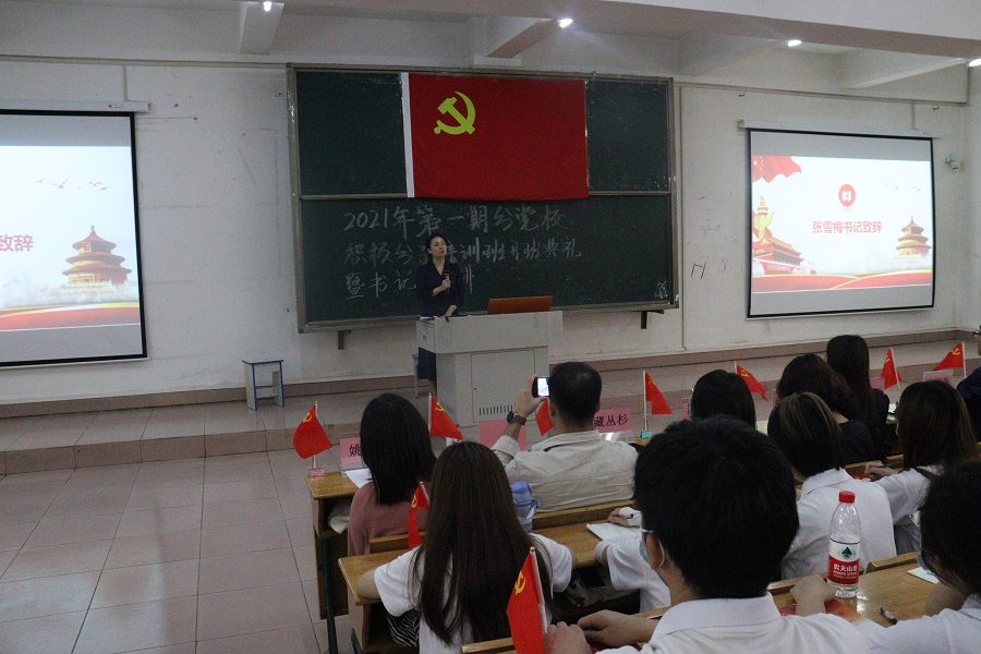 为深入学习贯彻习近平总书记在清华大学考察时的讲话精神,进一步加强对入党积极分子的培养和教育,提高入党积极分子的思想政治素质,suncitygroup太阳集团于4月21日中午在一教104教室开展2021年第一期分党校入党积极分子培训班开班典礼暨书记第一讲。出席本次开班典礼的有suncitygroup太阳集团党总支书记张雪梅,19级学生党支部书记陈丽红,20级学生党支部书记冯棋森,suncitygroup太阳集团党总支委员姚凡,17级辅导员张素平,18级辅导员巫进娣,19级辅导员刘晶、何锡智,20级辅导员藏丛杉、唐朝以及240名学生入党积极分子。会议由谢嘉颖同志主持。