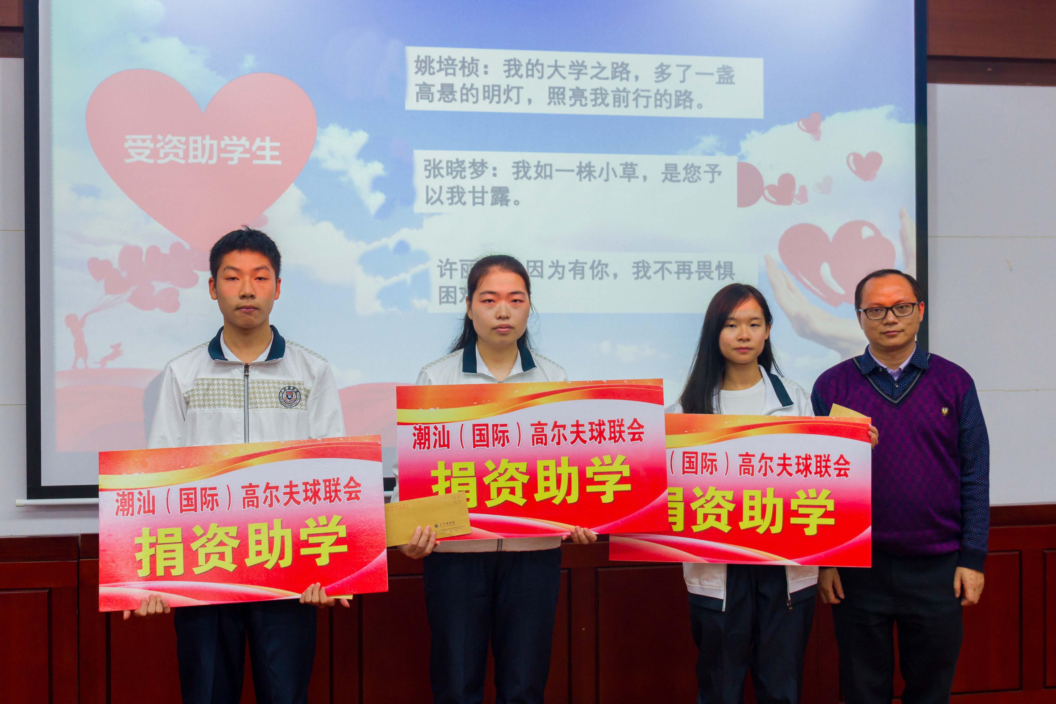这次潮汕(国际)高尔夫球联会对广商学子们慷慨地伸出的援手,不仅及时有效地解决了学子们的后顾之忧,而且让他们安心地踏上走向未来的庄康大道。