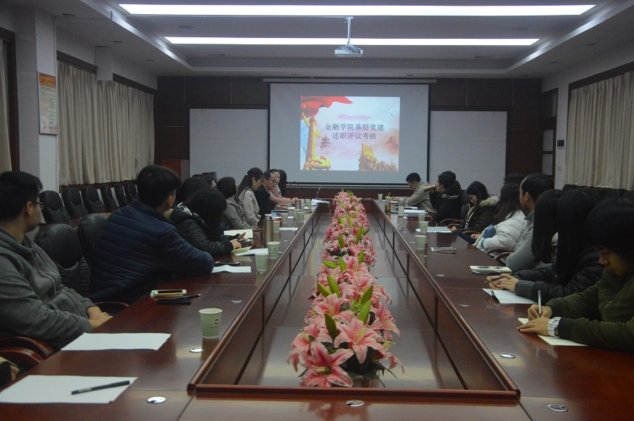 为进一步提升我院基层党支部的组织力和工作水平,根据《关于做好2018年度我校基层党建述职评议考核工作的通知》精神,结合我院实际,金融学院党总支于2019年1月3日中午13:30分在第二行政楼208会议室召开了金融学院基层党建述职评议考核年度总结会议。会议由党总支张雪梅书记主持,党总支委员、金融学院张燕副院长、陈德余副院长、各支部书记、各教工党员、各年级辅导员、各学生支部党员同志出席了本次会议。