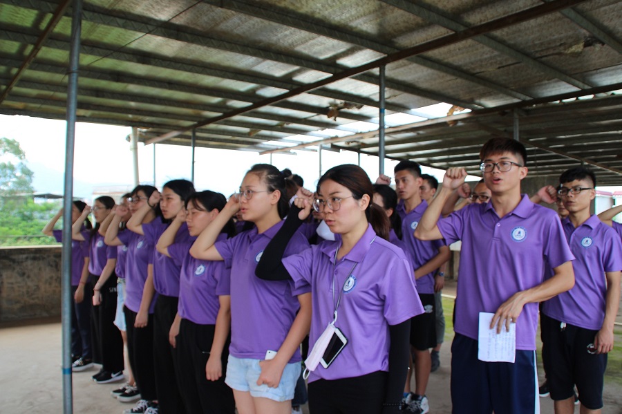 首先张雪梅书记对全体队员做了重要讲话,强调志愿者们要服从组织的安排,一定要注意人身和财产安全,其次遵守校规校纪,尊重当地民俗风情,切勿乱说话。志愿者们热情高涨做好了充足的准备。车上气氛融洽,志愿者们还为超锐同学齐唱生日歌。到达杨子坑小学,陈校长亲自迎接并妥善安排志愿者们的吃住行,然后志愿者们进入全面的备战状态,杨子坑村委党支部陈伟清书记亲自为我们安装热水器,随后全体志愿者进行庄严的宣誓大会,会上由杨子坑小学陈校长讲话,为了迎接我们青春逐梦志愿服务队的到来,陈校长经过不懈努力扛住重重压力迎接热心广商志愿者。陈校长也强调志愿者们和小学生们的人身安全问题,还有希望大家留下美好的回忆并放心把45个学生交给青春逐梦队。最后陈敬宗老师提了几点建议后就进行全员宣誓。